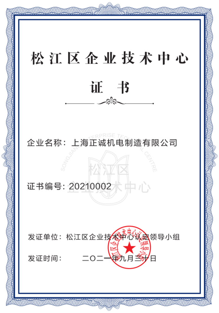 秋高氣爽,喜氣盈門。上海正誠機電制造有限公司通過了上海市松江區(qū)企業(yè)技術(shù)中心認定領(lǐng)導(dǎo)小組的嚴格考核,并經(jīng)過區(qū)經(jīng)濟委員會、區(qū)發(fā)展和改革委員會、區(qū)科學(xué)技術(shù)委員會、區(qū)財政局、區(qū)稅務(wù)局、區(qū)質(zhì)量和技術(shù)監(jiān)督局等有關(guān)部門及專家組的層層評審與把關(guān),獲得了“松江區(qū)企業(yè)技術(shù)中心”認定。
